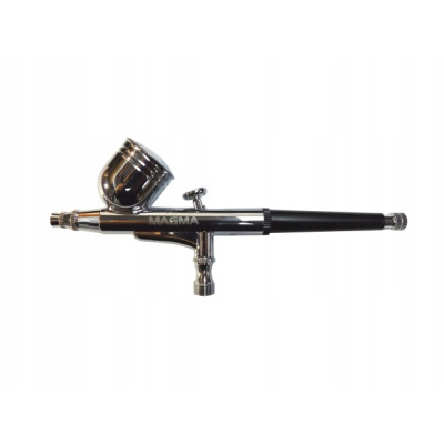 Jest to aerograf dwufunkcyjny co oznacza, że przyciskiem regulujemy zarówno ilość podawanego powietrza (ruchy w dół i w górę) jak również ilość farby (ruchy do tyłu i do przodu).