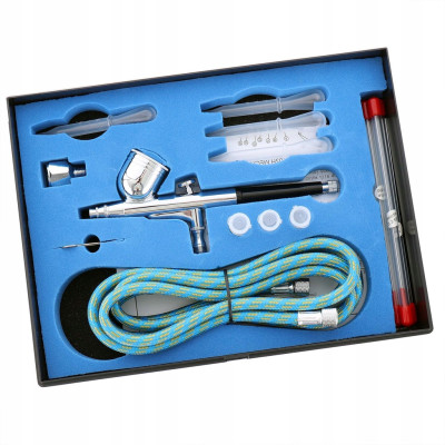 Zestaw gotowy do użycia. Wyposażony w różnego rodzaju dysze z możliwością wymiany. Nadaje się do malowania ciała, egzemplarzy modelarskich, malowania artystycznego, retuszu, cieniowania, itp.