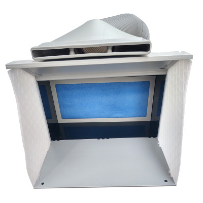 Wentylator wbudowany w tył kabiny pozwala na odprowadzenie mgły powstałej podczas malowania do rury spiro znajdującej się w zestawie. Rurę można z powodzeniem wpiąć do przystosowanych otworów wentylacyjnych.