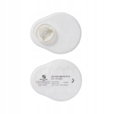 Filtry SECAIR 3000.02 P2 R po skompletowaniu z dwufiltrową półmaską lub maską, chronią układ oddechowy przed aerozolami z cząstek stałych (pyły, dymy) i ciekłych (mgły), o ile stężenie fazy rozproszonej nie przekracza wartości 10 x NDS (Najwyższe Dopuszczalne Stężenie).