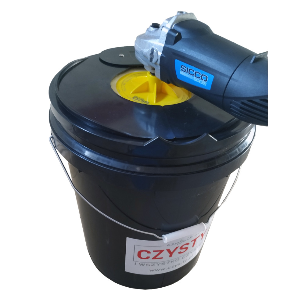 Wiadro do czyszczenia gąbek i futer polerskich to specjalnie opracowane wiadro z mechanizmem czyszczącym, przeznaczone do prania padów polerskich. Wiadro w znaczący sposób skraca czas potrzebny na wyczyszczenie akcesoriów polerskich, dokładnie pozbywając się pozostałości po pastach, politurach i woskach. Skutecznie usuwa nadmiar wody, pozwalając na szybkie i precyzyjne osuszenie materiałów polerskich. Urządzenie pozwala utrzymać dłuższą żywotność padów oraz gąbek polerskich, pomagając w zachowaniu doskonałych właściwości także gąbek wełnianych, które są podatne na gubienie włosia.
