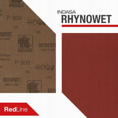 Wodoodporny papier ścierny Rhynowet RedLine marki Indasa, przeznaczony do ścierania starej powłoki lakierniczej, szlifowania przed nałożeniem podkładu, matowienia przed warstwą lakieru nawierzchniowego oraz innych czynności związanych z obróbką ścierną. Wykonany na elastycznym, lateksowym, antypoślizgowym i wodoodpornym podłożu papierowym, jego wysoką wydajność i wytrzymałość otrzymuje się dzięki bardzo dużej przyczepności ziarna do papieru lateksowego.