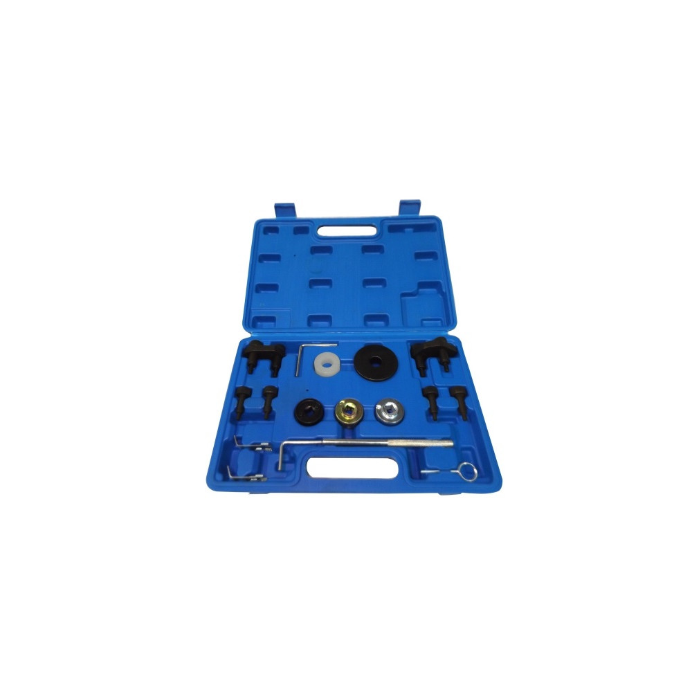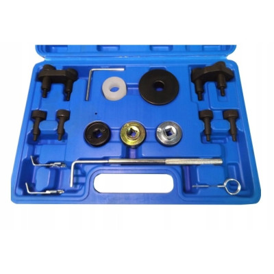 Zestaw służy do ustawiania wałka rozrządu podczas wymiany paska lub łańcucha rozrządu w silnikach benzynowych oraz montowanych w samochodach marek: VW, Audi.