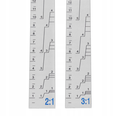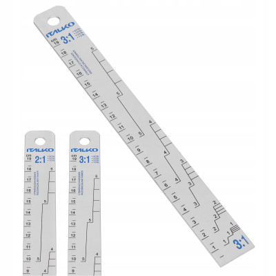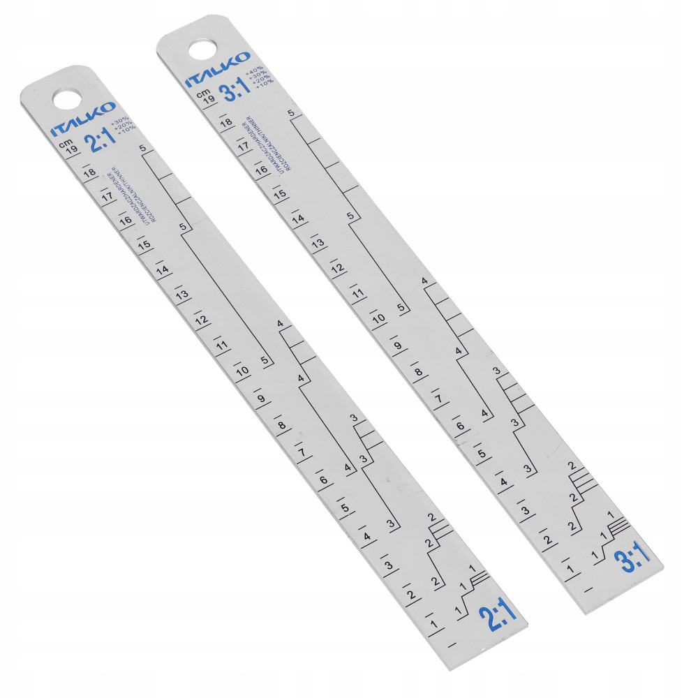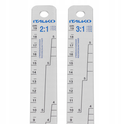 Aluminiowa listwa dwustronna służąca do proporcjonowania i mieszania utwardzacza i rozcieńczalnika w stosunku do lakierów akrylowych, bazowych oraz podkładów.
