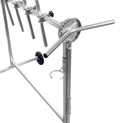 Stabilna konstrukcja na mocnych kołach pozwala na łatwe przemieszczanie stojaka.