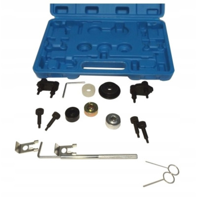 Zestaw służy do ustawiania wałka rozrządu podczas wymiany paska lub łańcucha rozrządu w silnikach benzynowych oraz montowanych w samochodach marek: VW, Audi.